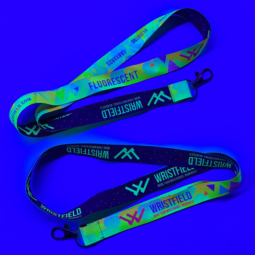 Dank der UV-Reagenz-Drucktechnik erstrahlen die Schlüsselbänder in besonderen NEON-Farben unter UV-Licht.